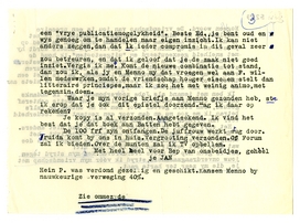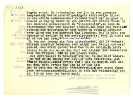 Ik hoop dat ik nu zoo duidelyk geweest ben, dat je my begrypt en dat het niet noodig is om nogmaals uit te leggen waarom ik vind dat je Vic wat hard aanpakte en waarom ik goed met Maurice ben. Ik kan my op dit terrein niet van myn stuk laten brengen, omdat het hier niet een gewone meening geldt, maar omdat ik, anders denkende en doende, niet eerlyk zou zyn en tegen myn aard zou ingaan. Dus: ik wil myn bezwaren tegen een kameraad mogen uiten en hem toch in myn hart genegen blyven. Als jy dat niet kan is daar ook al weer niets aan te doen. Wy zyn nu eenmaal niet allemaal eender!