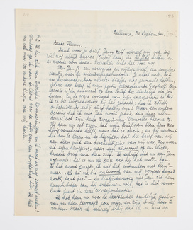 Denk erom: wij gaan 14 October van hier. - Ik ben benieuwd of Jan je onze brieven zendt; ik denk toch van wel. Hartelijke groeten, ook van Bep en aan Rina, een hand van je