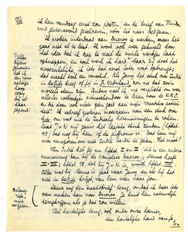 Ik ben het met deze epiloog althans geheel eens en had mij voorgenomen de zaak verder alleen nog maar met je te bepraten. Gisteren schreef ik je mijn laatste brief erover. Zend aan Henny door of niet, precies zooals je wilt. Ik ben er, met inkt althans, zeer volledig over uitgep....t (uitgeput).
