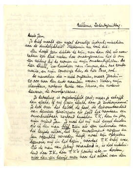 Enfin, de rest werkelijk mondeling. Ook deze geschiedenis is zeer pijnlijk voor mij geworden, after all; misschien is het zelfs beter om er maar heelemaal niet over te praten ook. - Tant pis dat nu ook de krissen-attentie mislukt is; zoodra ik geld heb en het niet meer leenen moet, hoop ik wat anders te vinden. Dat T.V. mij de zegelring van mijn vader ten geschenke wil aanbieden, vind ik zeer onprettig.2928 Vergeef me dat ik je dit ook maar weer met dichtersbotheid zoo zeg.