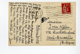 Ik kom Donderdagavond laat in Brussel en blijf tot Zaterdagavond. Dus 1½ dag. Ze zullen wel druk bezet zijn, maar ik hoop je toch te zien. Laat het tikwerk dus maar tot dan liggen; ik neem dan wel mee wat klaar is. Hartelijk je