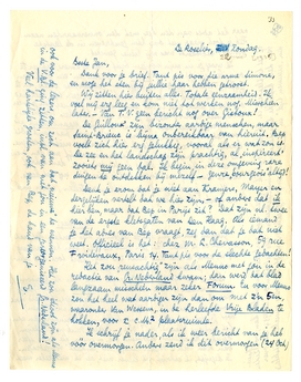Denk je erom dat je niet aan Kramers, Mayer en dergelijken vertelt dat we hier zijn, - of anders dat ik hier ben, maar dat Bep in Parijs zit? Dat zijn nl. twee van de ergste kletsgaten van Den Haag. Als iemand je het adres van Bep vraagt, zeg dan dat je dat niet weet. Officieel is het: chez M.L. Chevasson, 59 rue Froidevaux, Paris 14. Tant pis voor de slechte gedachten!