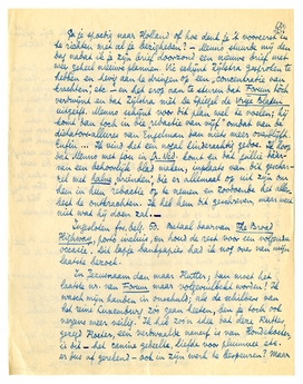 Bep klaagt dat ze haar proeven (v.d. Engelsche kroniek) niet krijgt, ofschoon ze haar copy toch tijdig heeft ingeleverd, en zelfs voortijdig. Zou je hiernaar ook willen informeeren en op regelmatigheid willen aandringen, want dit is nu weer een flinke streep door onze rekening wat de ‘inkomsten’ betreft. Het is een pest als je zoo rekenen moet, maar que veux-tu? Dit is nu onze situaasje.