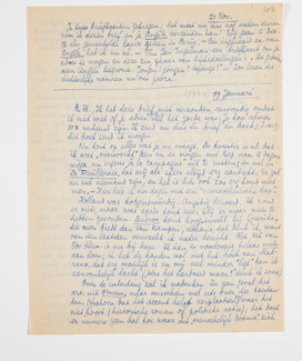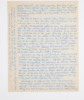 Nu nog wat practische gebeurtenissen van financieele aard. Bij mijn moeders dood was er op de Bank in Amsterdam een som (in aandeelen) van ± fl. 61.000. En een schuld van ± fl. 40.000; dus er zou resten fl. 21.000. Deze zijn nu, door het zakken van den dollar in Amerika, gezakt tot ± fl. 2000. - Daar krijg ik dan iets meer dan de helft van; daar moet ik den notaris en den agent van de Weeskamer voor dank zeggen, omdat zij voor de erfenis zoo legaal gewaakt hebben. Even fl. 19.000 bêteweg verzwonden; d.w.z. voor mij zoowat fl. 12000. Bedenk eens hoeveel geploeter mij die fl. 12000 alleen zouden hebben bespaard.