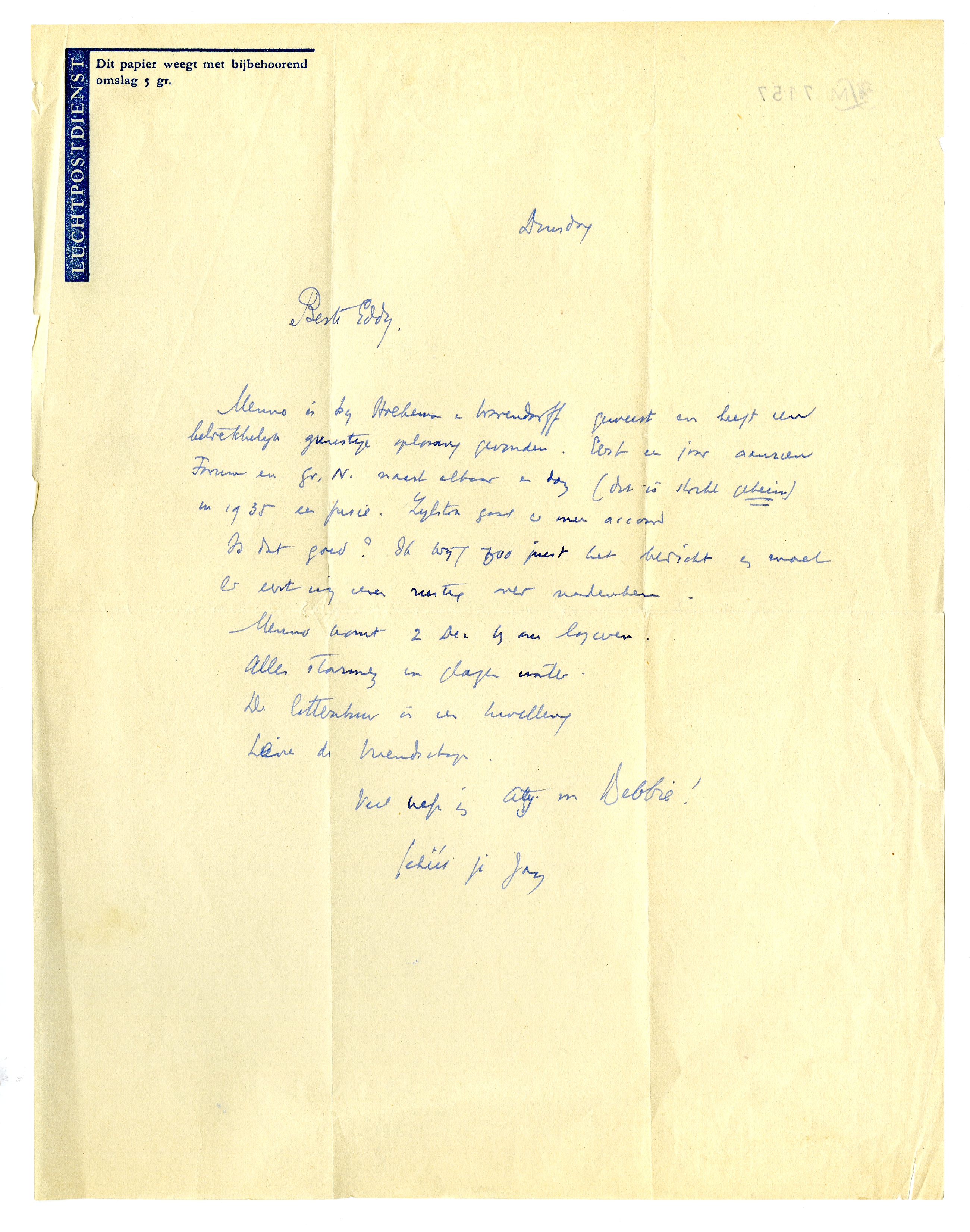 Menno is bij Holkema en Warendorff geweest en heeft een betrekkelijk gunstige oplossing gevonden. Eerst een jaar aanzien Forum en Gr. N. naast elkaar en dan (dit is strikt geheim) en dan in 1935 een fusie. Zijlstra gaat ermee accoord.