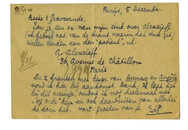 Zou je een ex. van mijn stuk over Alexeïeff3009 (ik bedoel nat. van de krant waarin dat stuk zit) willen zenden aan den ‘patient’, nl.