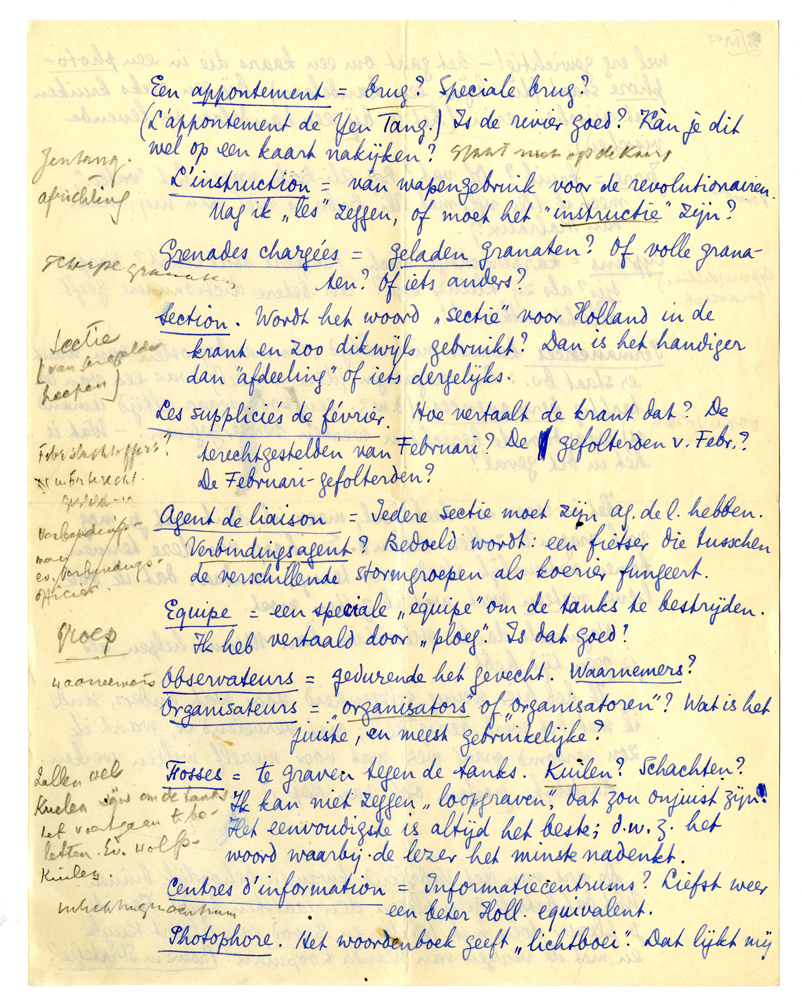 | Agent de liaison = Iedere sectie moet zijn ag. de 1. hebben. Verbindingsagent? Bedoeld wordt: een fietser die tusschen de verschillende stormgroepen als koerier fungeert. | |