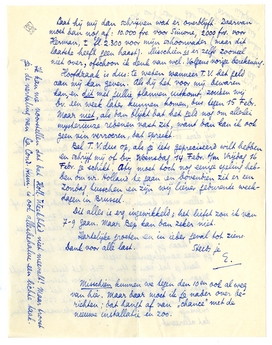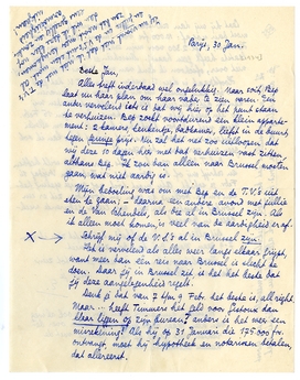 Laat hij mij dan schrijven wat er overblijft. Daarvan moet dan nog af: 10.000 frs. voor Simone, 2000 frs. voor Herman, ± fl. 2.300 voor mijn schoonvader (maar dit laatste heeft geen haast). Misschien is er zelfs zooveel niet over, ofschoon ik denk van wel. Volgens vorige berekening.