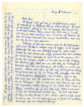 Ik begrijp niet veel van je verplaatsingen, want ik waande je in Holland. Ben je alweer terug? Of moet je nog gaan? Schrijfje mij nu precies wanneer je mij in Brussel hebben kan, want den 25en zou je er ook niet zijn en toch spreek je van ‘eind van de maand’. Ik zou wel graag ditmaal iets met je vaststellen, ook met het oog op onze eigen plannen.