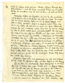 Als ik door een verdwaalde kogel verongeluk en de arme Bep ook (!) ziehier dan mijn laatste wil: 1. Ducroo uitgeven met voorrede van jou of Menno; het MS. is bij Antonini, 6 rue Corot, en een deel onder mijn papieren; 2. over Gille correspondeeren met mijn schoonzuster Erna (mevr. E.A. van Polanen Petel, Dagoweg 62, Bandoeng, Java). 3. Geld bij notaris en Maasland aan Gille besteden. Dat is alles; het is leuk het op te schrijven omdat het zoo verdomd weinig is! Wat een poëet, of wat een acteur, is die E. du P.! Maar, zegt Bep mij nu al 8 dagen lang, de verdwaalde kogels zijn bijna altijd voor lui die er niets mee te maken hebben. Ik heb er toch genoeg van om me te ‘gareeren’, en Bep wil volstrekt mee.