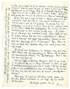 P.S. Als alles goed gaat, zijn we 26 a.s. dus in Brussel. - Het zal een opluchting voor me zijn als Simone haar geld heeft! Veel dank voor je spoedbriefje!