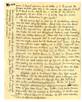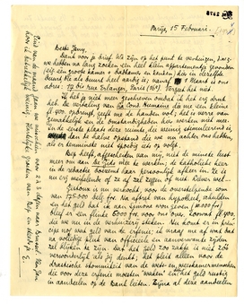 Ik heb je niet meer geschreven omdat ik het erg druk heb. De vertaling van La Cond. Humaine die me een kleine fl. 400. opbrengt, geeft mede handen vol; het is verre van gemakkelijk en de omstandigheden hier werken niet mee. In de eerste plaats deze ruimte, die weinig stimuleerend is, dan de halve opstand die we nu achter ons hebben, als er tenminste niet spoedig iets volgt.