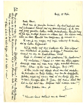 Ik ben verder nog steeds druk aan het vertalen. De onlusten in Parijs hebben ons zonder kogelgaten gelaten, maar wij waren toch al een beetje fier om in zoo'n bewogen sfeer te leven, tot opeens bleek dat het in het oord van Dolfuss véél mooier was!*