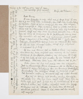 P.S. - De heele erfenis is nu in aantocht! Als ik nu niet nogmaals beroofd en geplukt word, krijgen wij ± fl. 4300. En ± fl. 500. overschot van Gistoux; dat zou dus alles bijeen een kleine fl. 5000. zijn. Valt het je nu weer mee? Querido heeft Ducroo nu, voor fl. 1000. Eind v/h jaar af te leveren.