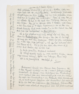 Ik wou je nu 2 andere politieke romans zenden, die net verschenen zijn: Sjanghai van Wagener (het schijnt een journalist te zijn van de N.R.C., Vic vindt zijn boek ‘geniaal’ - zooals trouwens alles - en Menno vindt het één verrottenis) en Partij Remise van Jef Last. Ik heb de beide boeken hier; ik lees al dit technische Hollandsch voor mijn vertaling van Malraux. - Last las ik nog niet, Wagener heb ik half uit. Het gekke is dat zoo'n boek, door het kranten-knipsel-karakter ervan juist, niet vervelend is; het is alleen maar ‘beneden alles’. Als dàt de literatuur van de toekomst worden moet - zooals Theun de Vries, en ook Vic helaas, zich verbeeldt - dan moeten we ons voorbereid houden op massaschrijverij in de meest letterlijke beteekenis, want iedereen letterlijk kan zulke boeken in elkaar leeren zetten. Er is maar één ding wat den eenen schrijver van den anderen onderscheidt: het stereotiepe toontje dat hij zich voor zijn 300 blzn. heeft aangemeten: bv. tragisch, ernstig, ontroerd, zakelijk, enz. Dat van Wagener is Hollandsch-gijnig. Onverstoorbaar, en in wezen dus toch weer cynisch-geroerd gijnig. Een handelsreiziger die de pen heeft leeren hanteeren (zijn volzinnen zijn verre van slecht), die door de Kring is gegaan en er weer uit gekomen is* en nu, zooals het hoort, de politiek met een gespannen meeleven vereert. Alles bijeen een weerzinwekkend individu, maar zijn boek kan men toch lezen, dat blijft het gekke, al is het één naäperij van Döblin-Dos Passos, Sturm-groep, etc.3095