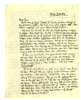 Nog even een vervolg op wat ik Truida gisteren vroeg je te zeggen: Bep heeft van Gr.Ned. (uitgever) bericht gekregen (gisteravond) dat ze de kroniek niet meer betaalden als vroeger, maar hadden afgeslagen tot fl.4. de boekbespreking. Zij zal nu Coenen schrijven dat ze er in deze omstandigheden van afziet. - Meteen heb ik nu Menno geschreven om mijn rijmpje op Dr. Fischer niet af te drukken, opdat Coenen mij niet verdenke van een lage wraakneming over de verloren bron van inkomsten!