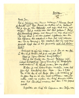 Maar dan echt - stuur me anders de brief omgaand terug, opdat ik er een andere bestemming aan geef. Zou Arthur niet mee willen doen? Graag spoedig antwoord: L. wou den brief vóór 1 Mei aan Colijn sturen. Er is dus haast bij.