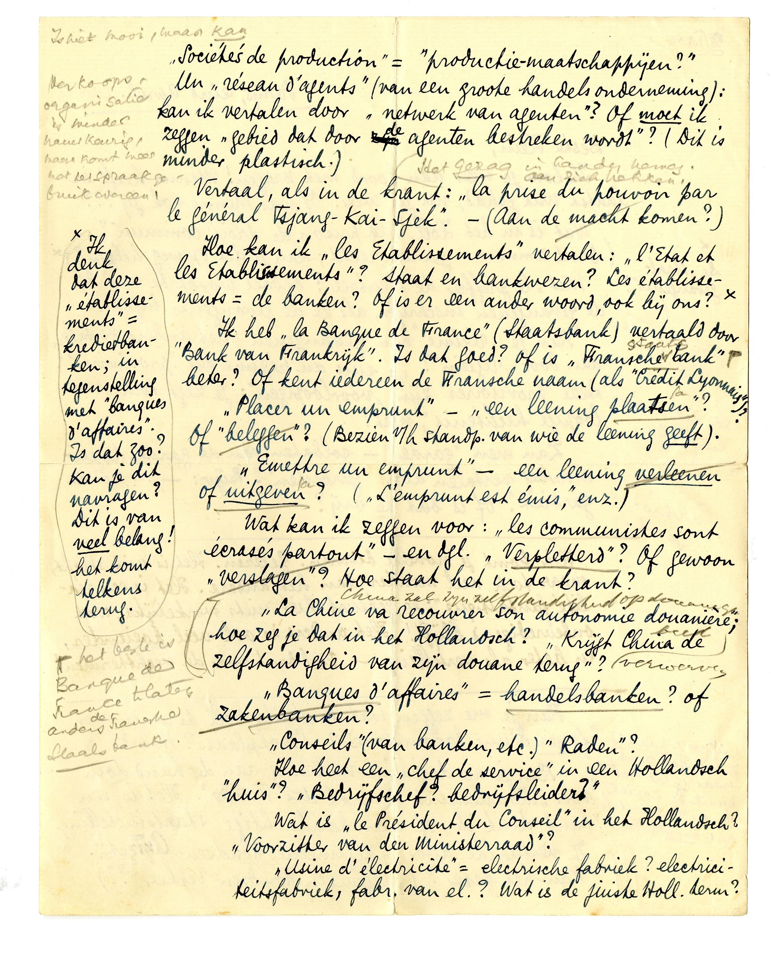 Ik heb ‘la Banque de France’ (Staatsbank) vertaald door ‘Bank van Frankrijk’. Is dat goed? Of is ‘Fransche bank’ beter? Of kent iedereen de Fransche naam (als ‘Crédit Lyonnais’)?