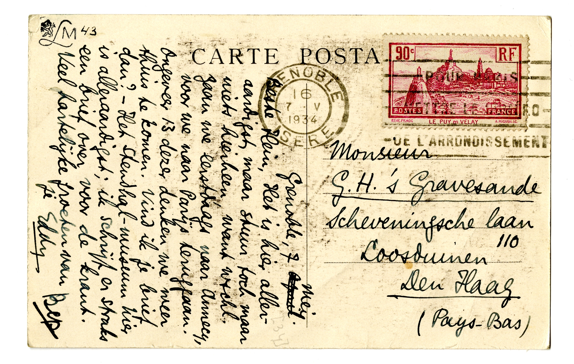 Beste Hein, Het is hier alleraardigst, maar stuur toch maar niets hierheen, want wschl. gaan we eerstdaags naar Annecy, voor we naar Parijs teruggaan. Ongeveer 13 dezer denken we weer thuis te komen. Vind ik je brief dan? - Het Stendhal-museum hier is alleraardigst; ik schrijf er straks een brief over voor de krant. Veel hartelijke groeten van