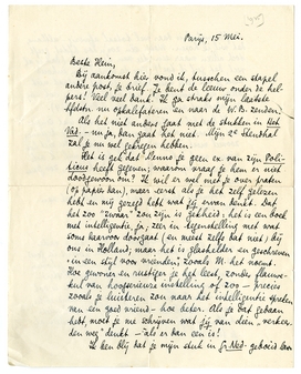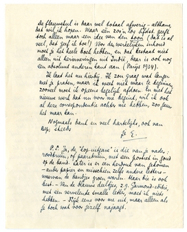 Ik laat het nu hierbij. Ik zou graag wat langer met je praten, maar ik weet niet waar te beginnen, zooveel moet ik opeens tegelijk afdoen. En met het nieuwe werk dat nu voor me begint, wil ik ook al deze correspondentie achter me hebben, zoo gauw het maar kan.