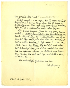 Ik heb vergeten u te zeggen dat ik zeker tot half Augustus a.s. nog in Parijs ben. Als ik wegga en de drukproeven dan nog niet gecorrigeerd mochten zijn, zal ik u natuurlijk mijn adres opgeven.