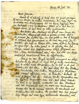 Marsman is zeer ònchristelijk geworden; hij schreef mij o.a. een brief waarin hij mij liet beloven dat ik, als ik op mijn sterfbed lag, vooral toch géén geestelijke zou laten halen (zooals ik, de eerste maal dat ik met jou en hem sprak - ik herinner er mij zelf niets van! - schijn te hebben mogelijk geacht). Die belofte heb ik hem nu maar gegeven. - Verder schijnt hij bewondering te hebben opgeloopen voor het fascisme, maar daar hij mij hierover nog niets schreef, moet je dit nog rekenen tot de vage geruchten. - Als je me die kiekjes van Jany en hem, door mevrouw Wiegersma gemaakt, kunt bezorgen, zal ik er je zeer dankbaar voor zijn.