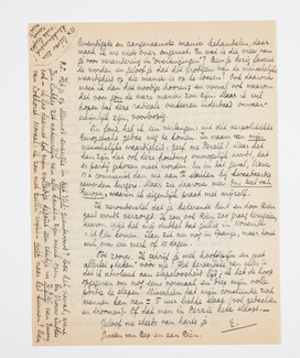 Tot zoover. Ik schrijf je met hoofdpijn en met allerlei ‘taken’ vóór me. Het beroerdste van alles is dat ik absoluut aan slapeloosheid lijd; ik heb de hoop opgegeven om nog eens normaal en diep mijn volle portie te slapen. Misschien dat mijn constitutie zich wennen kan aan ± 5 uur lichte slaap (vol gedachten en droomen). Of dat men in Perzië beter slaapt. -