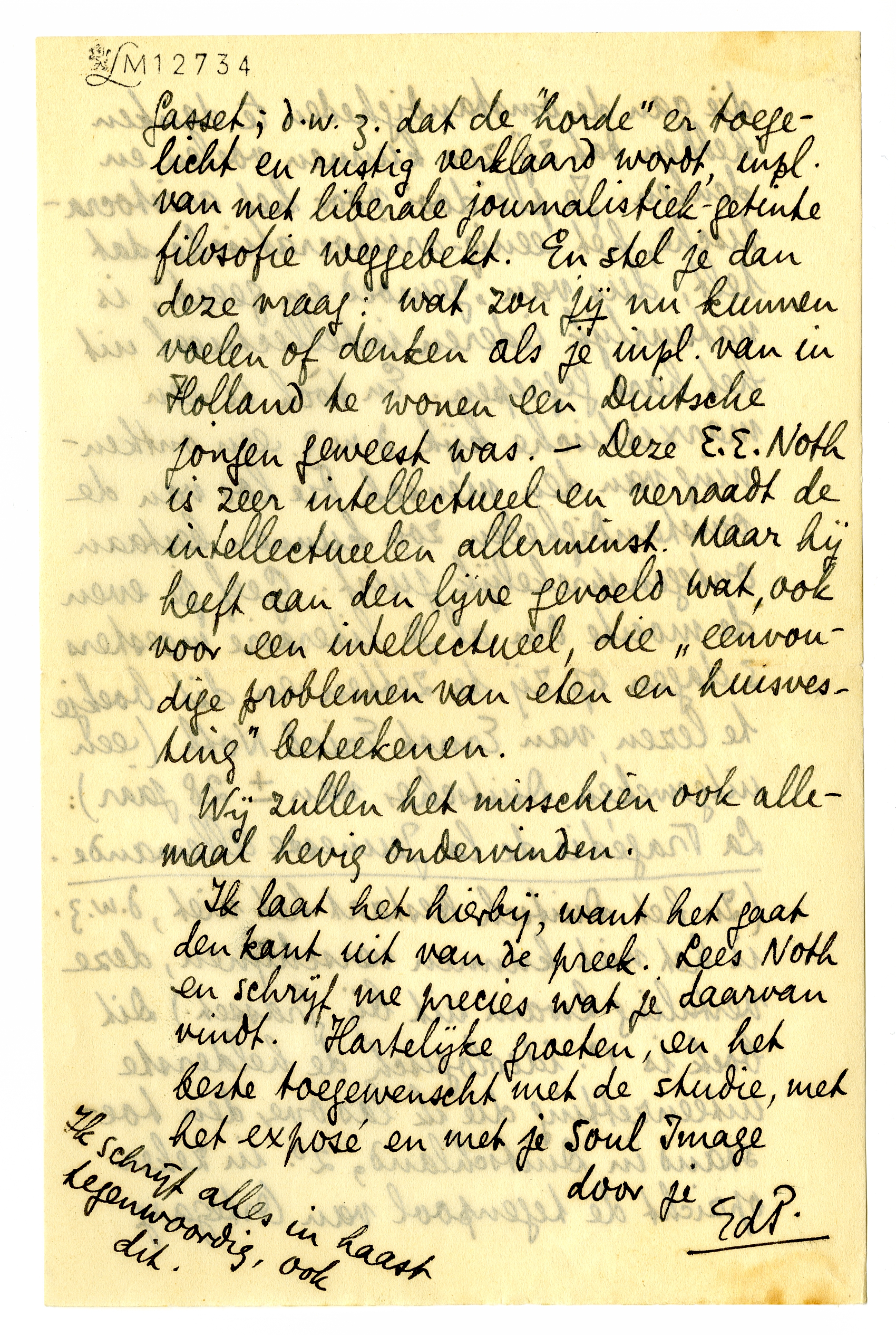 Ik laat het hierbij, want het gaat den kant uit van de preek. Lees Noth en schrijf me precies wat je daarvan vindt. Hartelijke groeten, en het beste toegewenscht met de studie, met het exposé en met je Soul Image3410.