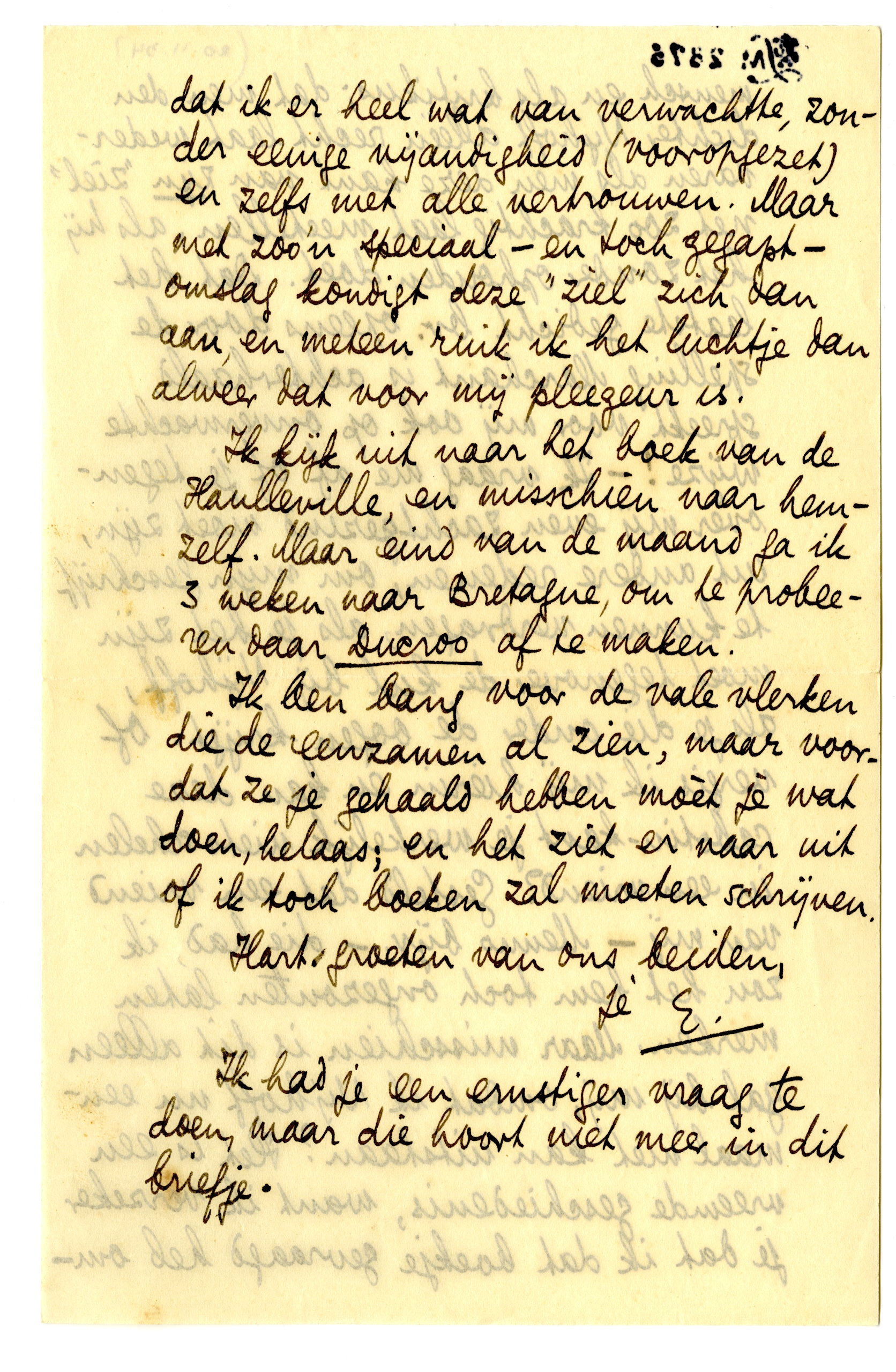 Ik had je een ernstiger vraag te doen, maar die hoort niet meer in dit briefje.