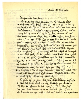 Van onze bevitters kunnen wij het meeste leeren. Ik krijg van alle kanten ‘wenken’ over mijn vertaling en houd met alles rekening: de meeste van deze ‘wenken’ bestaan uit schoolmeesterseigenwijsheden zonder eenig belang voor het nederlandsch, waarin ik ook Malraux' eigenaardigheden heb willen weergeven; maar af en toe blijkt dat er nog zeer storende drukfouten staan, hier en daar is zelfs een tusschenzin weggevallen, en op blzij 337 zelfs een heele alinea met een zinnetje van Kyo! Het is absoluut zeker dat ik deze weggevallen zinnen vertaald heb, want ik herinner ze mij heel goed; ik ben alleen niet zeker ervan dat ik ze op de eerste proef al niet gemist heb, misschien zijn ze op een revisie weggevallen. (Ik zeg dit omdat ik andere weggevallen zinnen, tot op de 2e revisie, heb aangegeven; maar het kàn zijn dat deze mij direct zijn ontgaan: als ik mijn vertaling ook nog woord voor woord met het fransch had moeten confronteeren zou ik nooit op tijd klaar zijn geweest.)