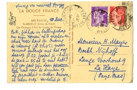 3477Prentbriefkaart: foto van St. Brieuc, achterzijde met voorgedrukte plaatsnaam.