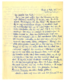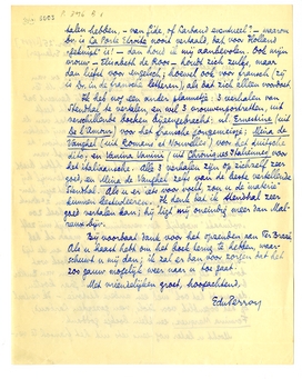 Mocht u later nog eens iets uit het fransch te vertalen hebben, - van Gide, of Larbaud eventueel? - waarom bv. is La Porte Etroite nooit vertaald, dat voor Holland ‘geknipt’ is! - dan houd ik mij aanbevolen. Ook mijn vrouw - Elisabeth de Roos - houdt zich zulks, maar dan liefst voor engelsch; hoewel ook voor fransch (zij is Dr. in de fransche letteren), als dat zich alleen voordoet.