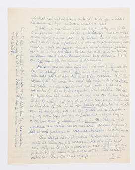 Het ernstigste van alles lijkt mij: wanneer zullen we elkaar terugzien? En waar? Als ik in April (tegen Paschen?) weer naar Holland kom, zal ik je zeker opzoeken. Of jullie komen hier? Wij wonen dan wschl. niet meer in dit eene studio; wij zoeken nu een appartement met althans 2 kamers, ook omdat de prijzen op het oogenblik flink zakken. Hoe het zij, tegen dien tijd vinden we er wel wat op. Anders betaal ik bv. de helft van je reis, of je heele reis en jij alleen het verblijf hier of zoo. Als ik van Ducroo af ben, zal ik verademen. Ik schrijf het slot met een gevoel dat de literatuur mij nog nooit gaf: dat van er grijze haren van te krijgen. - Ofschoon sommige stukken van De Sm. M. (kan je me je ‘synthese van reactie’ daarop niet toch nog eens schrijven?) heb ik ook geschreven in rotomstandigheden: hoofdpijn, etc.