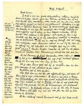 P.S. - Of het een vrouwtje of een mannetje geworden is, zal ik je morgen wel op een aparte briefkaart melden, nu is er nog niets gebeurd...