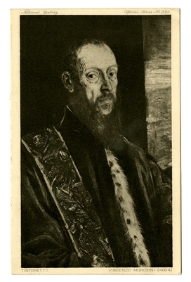 3641Prentbriefkaart: reproduktie van Vincenzo Morosini's portret door Tintoretto.