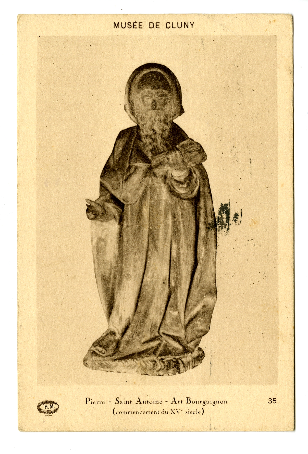 3642Prentbriefkaart: foto van het beeld van St. Antonius (Musée de Cluny te Parijs)