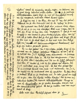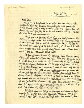 En nu het gekste! Een 3 of 4 dagen geleden kreeg ik een verzoek van de Groene (geteekend Foppema of zoo?) of ik de rubriek van J.v.N. tijdelijk wou overnemen3680: in principe tot zijn oog weer beter is. Ik heb dat aangenomen: 1o omdat ik, door Slau's optreden, met Vic en de N.R.C. gebrouilleerd ben, 2o.omdat ik niet op die plaats zal blijven, àls J.v.N. inderdaad erop terug wil. Ik heb dus gezegd dat ik in principe bereid was, mits met medeweten van J.v.N., en wacht nu op antwoord over de condities. En daar komt je verhaal!3681 Trek er je conclusies uit. In ieder geval is - zelfs als ze jou ‘aan het lijntje wilden houden’ tot ze over mij zekerheid hadden - de manier allerbelabberdst. Verwijs ze naar de Mengelstoffen, en je verdere kronieken overal, met een verneukeratief geluid. Ik zal je melden wat voor antwoord ik krijg.