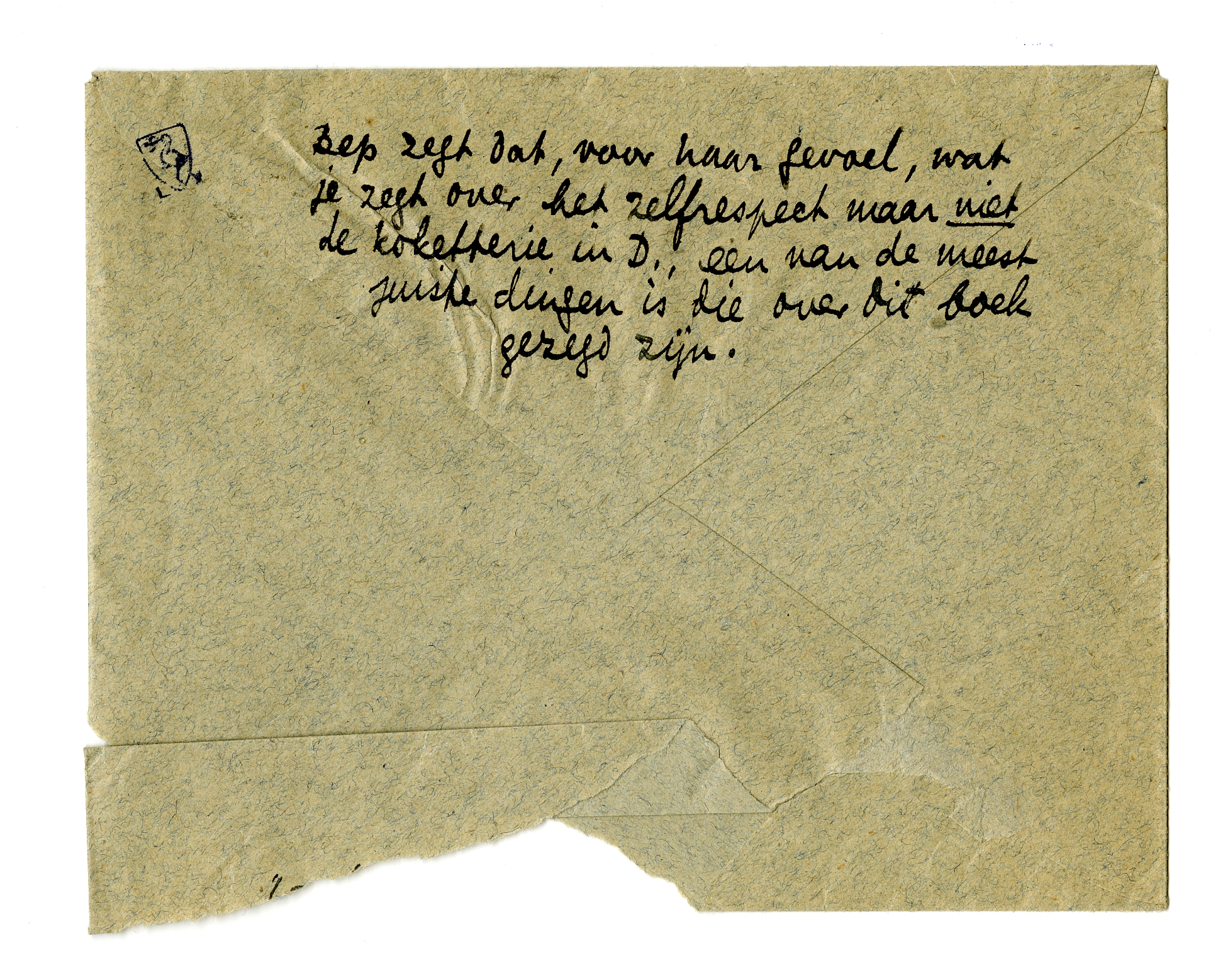 Hierbij een brief van die heeren. Schrijf me zoo spoedig mogelijk wat ik antwoorden moet. Kan ik zeggen: ‘ik verneem dat mijn vriend Greshoff sinds lang deze kroniek gevraagd heeft en tot dusver geen definitief antwoord heeft ontvangen; reden waarom ik ervan afzie’ of zoo? Je weet beter in welke termen zooiets het beste gaat. Of zal ik zeggen dat de betaling mij niet convenieert?