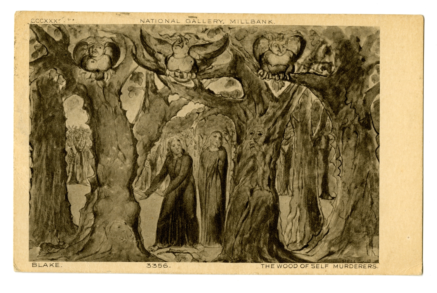 3698Prentbriefkaart: reproduktie van William Blake's The first book of Urizen 1794, pl. 27.