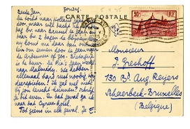 De tocht naar Holland gaat niet door, maar wèl dacht ik Donder-dag bv. naar Brussel te gaan en daar bv. 2 dagen te blijven. Henny komt me daar dan ontmoeten om samen door te gaan naar de Ardennen of zoo. Bretagne is te duur. De Pia's gaan wschl. naar Malmédy. We hebben allemaal hard rust noodig, wij decrepieten! Ik zal wel niet bij jou terecht kunnen? Schrijf je dit even. In dat geval ga ik naar dat Cyrus-hotel.
