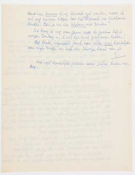 Ik heb niet den moed gehad om met de Pia's naar Malmédy te gaan, en was gisternacht dus hier terug; zéér tot mijn genoegen, moet ik zeggen! Het is hier ook rotweer, maar Bep en ik stralen van warmte over de hereeniging (is dit wel een woord?), en de Malraux' hebben zooeven hier gegeten, en alles is weer als in de beste tijden. Ik ben ook erg blij dat ik maar niet meer naar Brussel ben gegaan.