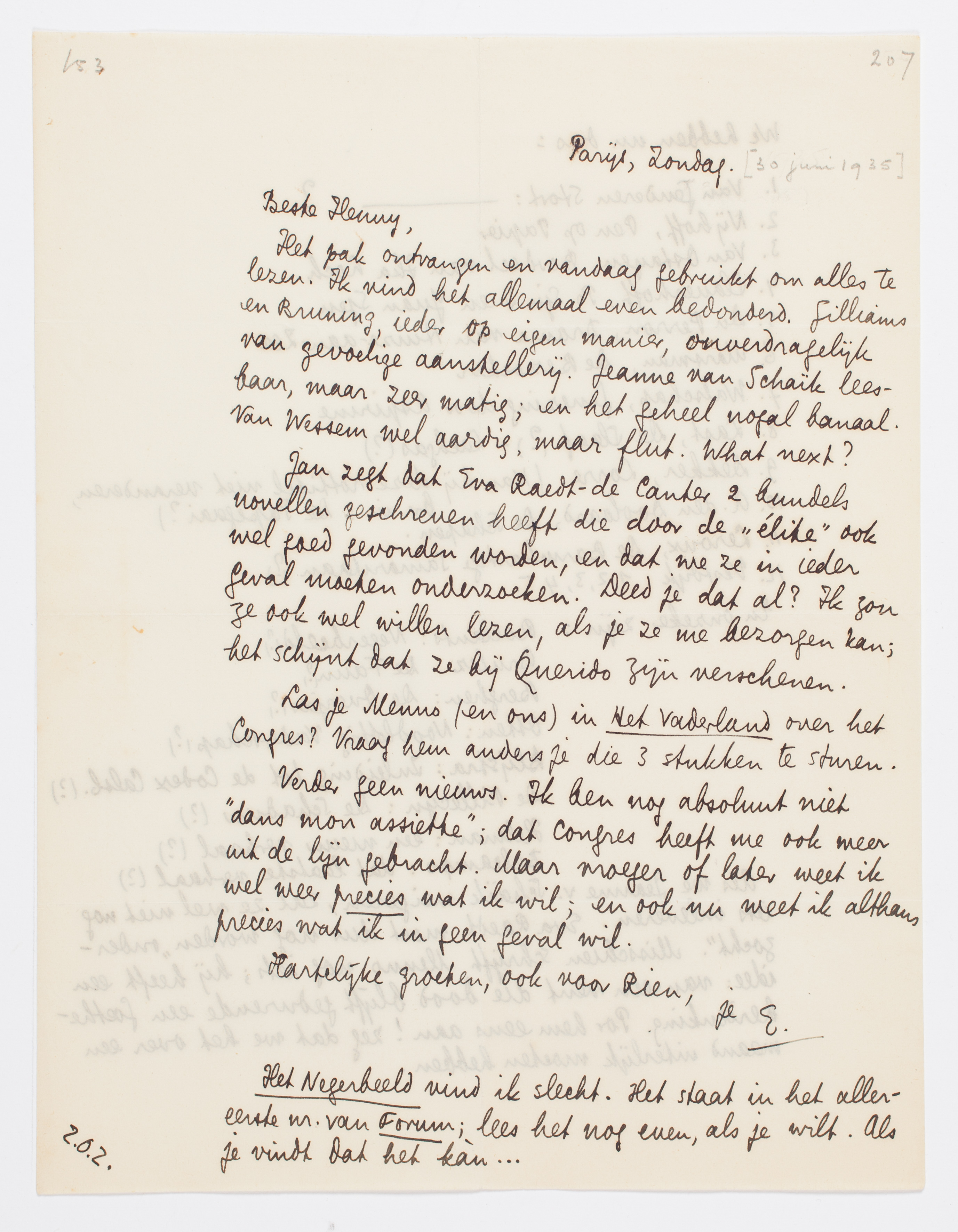 Jan zegt dat Eva Raedt-de Canter 2 bundels novellen geschreven heeft die door de ‘élite’ ook wel goed gevonden worden, en dat we ze in ieder geval moeten onderzoeken. Deed je dat al? Ik zou ze ook wel willen lezen, als je ze me bezorgen kan; het schijnt dat ze bij Querido zijn verschenen.3790