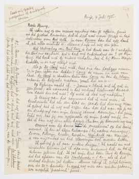 Ik vraag gelijk hiermee A.v.Nahuys om de bundels van E. Raedt-de C.3795 Er staat veel geschommel in dit haastige briefje, houd je dus alleen aan de ‘laatste decisies’. Als ik in Holland was, zou ik zelf allerlei dingen naspeuren voor die bundel van ons, nu sta ik er een beetje ‘hufterig’ voor te doen, en wat mij vooral hindert is dat we zoo weinig ontdekken. Zou die novellenbundel van Godthelp en Mirande3796 revelaties bevatten?