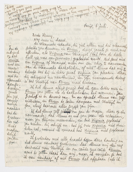 De Vlaamsche redactie, die zich alléén met het vlaamsche gedeelte zou bemoeien in Forum, dreigt, zooals je weet, met aftreden, als Virginia van Varangot (dat door de heele holl. red. was aangenomen) geplaatst wordt. Het gaat niet om Virginia of Varangot, maar om een schop te aanvaarden van de vlaamsche katholieken of niet.* Menno had mij ± beloofd dat hij in ieder geval Virginia zou plaatsen. Maar hij schippert nu voortdurend, en zijn voornaamste betoog is dat Vestdijk van Forum moet bestaan.