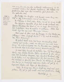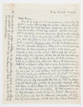 Deze brief moet ik ook nog versturen - dat is dus de derde! - omdat Menno mij vanmorgen uitvoerig schreef. Hij zegt dat hij nooit begrepen heeft dat ik niet meer mee zou werken, ook als hij uittrad. Ik ben dan wel heel onduidelijk geweest, want per brief en per gesproken woord heb ik hem aangekondigd (alles bij elkaar zeker 4 ×) dat dit gebeuren zou als Virginia niet geplaatst werd, - niet om Virginia, maar om de onbeschaamdheid van die roomsche troep uit Vlaanderen; om het principe waardoor de samenwerking met hen niet heelemaal dégoutant was, in één woord. Het is gek dat ik zoo onduidelijk ben geweest, ik die tot op het ouwehoerige probeer mij in zulke dingen precies te laten verstaan; - maar er is allerminst reden om Menno te wantrouwen, dus dit verklaart alles. Het is weer het ‘misverstand’.