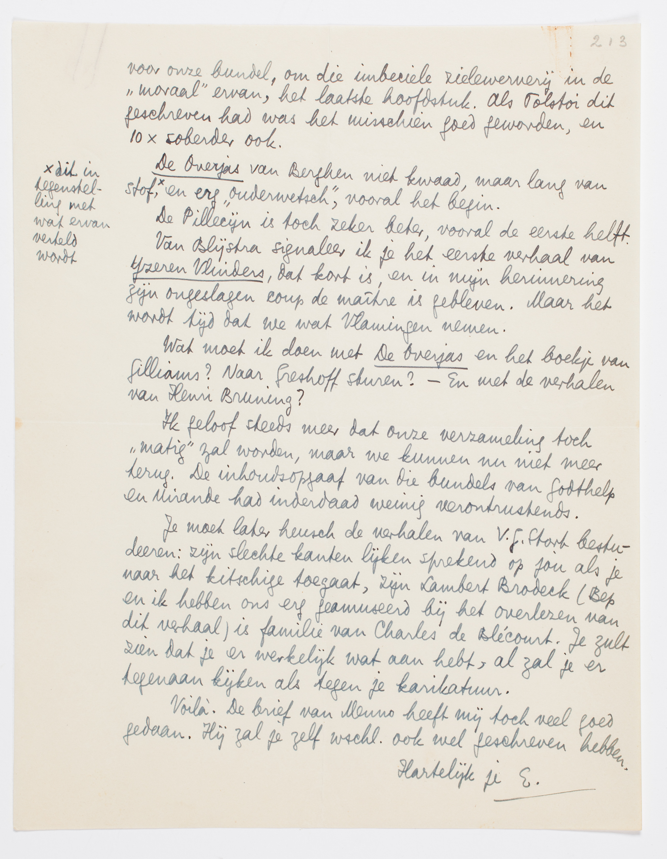 Wat moet ik doen met De Overjas en het boekje van Gilliams? Naar Greshoff sturen? - En met de vērhalen van Henri Bruning?