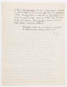 Ingesloten het prospectus. Ik ben nu ‘bij volle positieven’ en vind het zooals het is heel best; Bep ook. Met potlood gaf ik aan wat ik zelf ook veranderd zou willen hebben; de dingen die jou hinderen moet je er zelf dan maar uitgooien of veranderen. Ik heb niet veel van jou geschrapt - hier en daar een tusschenzin en een stuk over de knoeierij van de kunst van '80, die ook nu nog te lang besproken wordt, vind ik, in vergelijking met de rest. Werk dus gewoon hierop; verander met inkt wat ik met potlood voorstel, als je ermee accoord gaat (wat tusschen haakjes staat kan dus worden geschrapt), en schrijf met potlood erbij wat jij nog veranderen wilt. Stuur mij het document dan terug. Ik voor mij heb er niets aan toe te voegen.