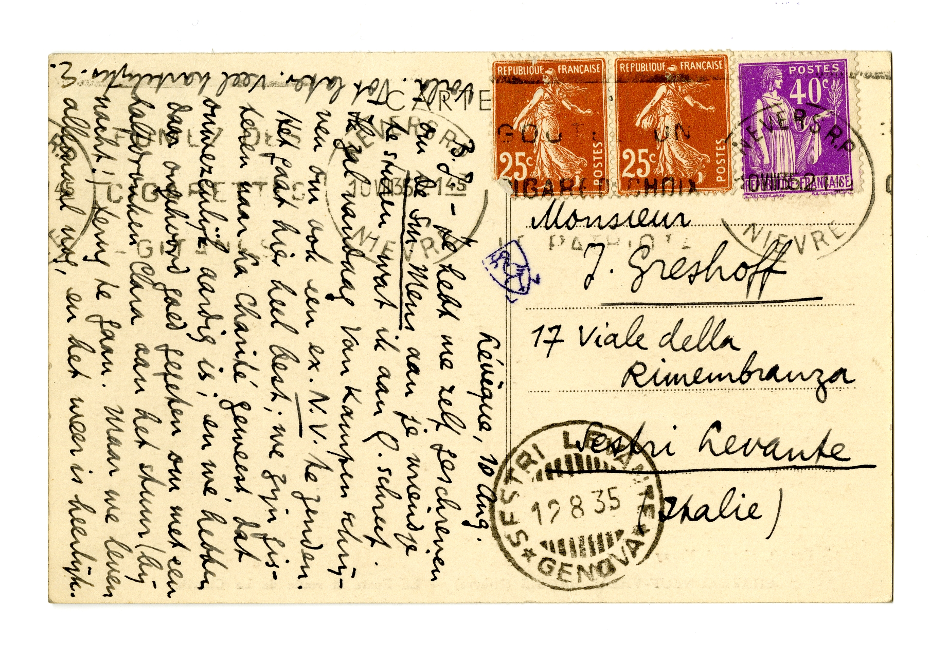 B.J. - Je hebt me zelf geschreven om De Sm. Mens aan je vriendje3838 te sturen, wat ik aan Q schreef. Ik zal vandaag Van Kampen schrijven om ook een ex. N.V. te zenden. Het gaat hier heel best; we zijn gisteren naar La Charité geweest, dat onwezenlijk aardig is; en we hebben daar ongehoord goed gegeten om met een halfdronken Clara aan het stuur (bij nacht!) terug te gaan. Maar we leven allemaal nog, en het weer is heerlijk.