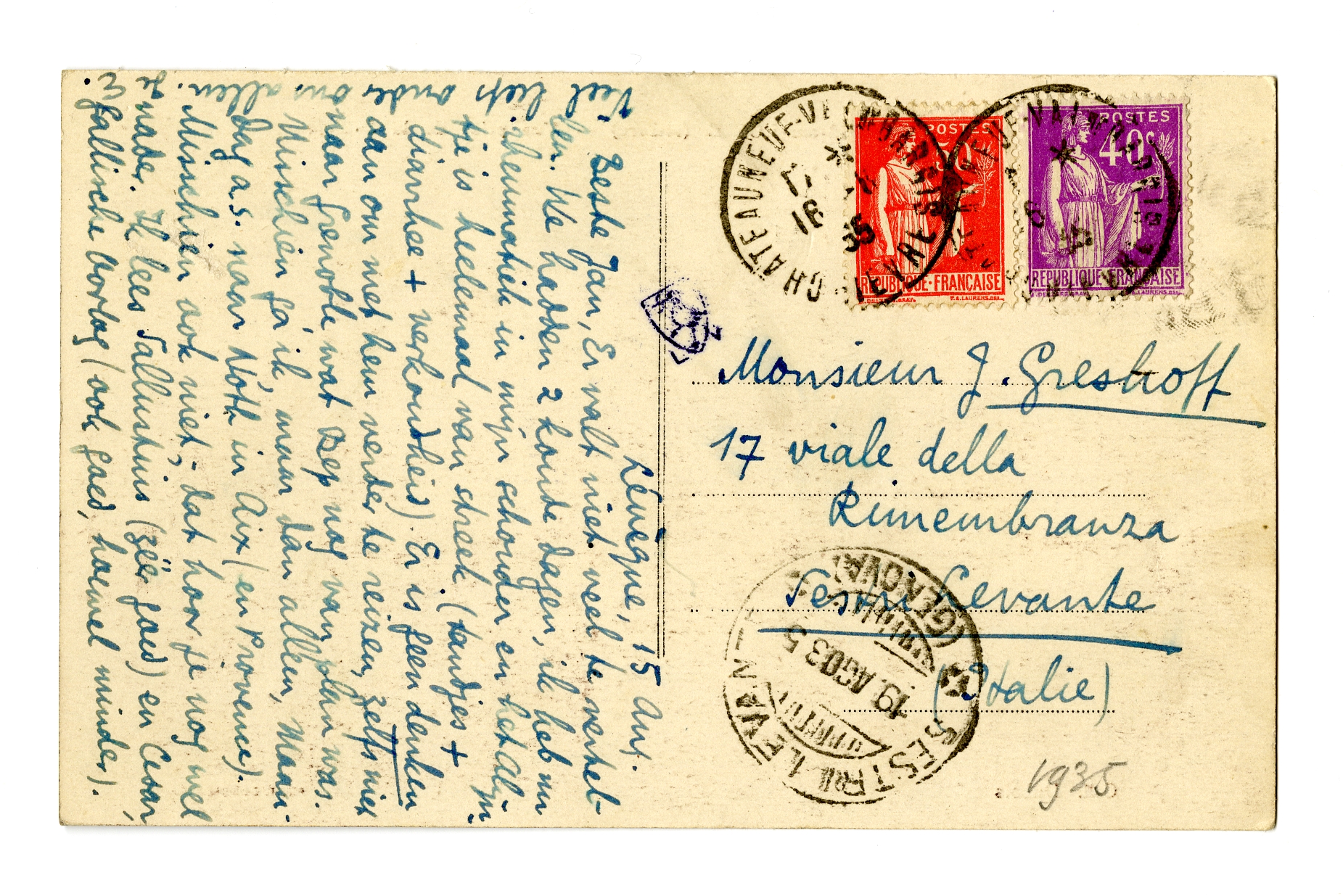 Beste Jan, Er valt niet veel te vertellen. We hadden 2 koude dagen, ik heb nu rheumatiek in mijn schouder en het Alijntje is heelemaal van streek (tandjes + diarrhee + verkoudheid). Er is geen denken aan om met hem verder te reizen, zelfs niet naar Grenoble, wat Bep nog van plan was.