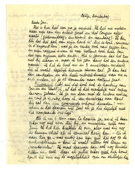 Is Aty ook goed thuisgekomen na haar week-van-beproeving, en hebben jullie het nu weer gezellig daar? Wij gaan zeker naar Bretagne, dat hebben we nu uitgemaakt. Schrijf dus of het voor jullie goed uitkomt als wij den 6en weggaan? Anders gaat Bep misschien wat later dan ik.